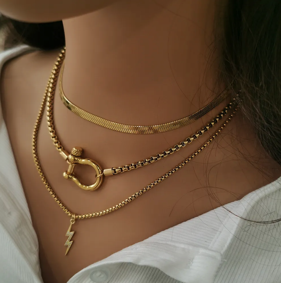 Okay Amara! We see you! Our Amara necklace is a stunning box chain necklace with chic horseshoe clasp. This piece is a favorite at Bella Nicole Jewelry.