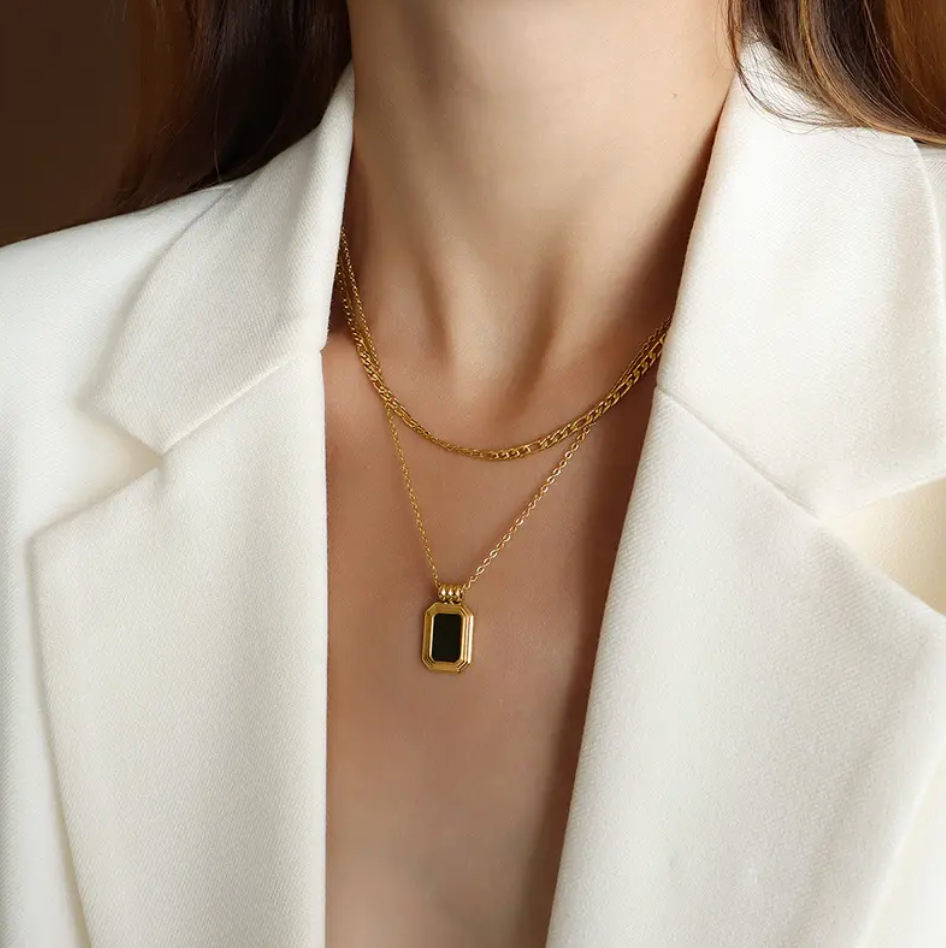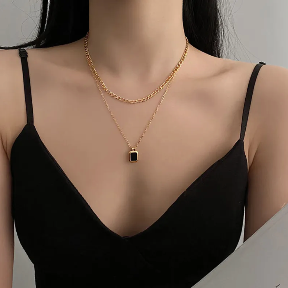Meet Jamie! A beautiful square pendant double layer necklace. She's sophisticated, trendy, and exudes style. Available in black and white pendant.