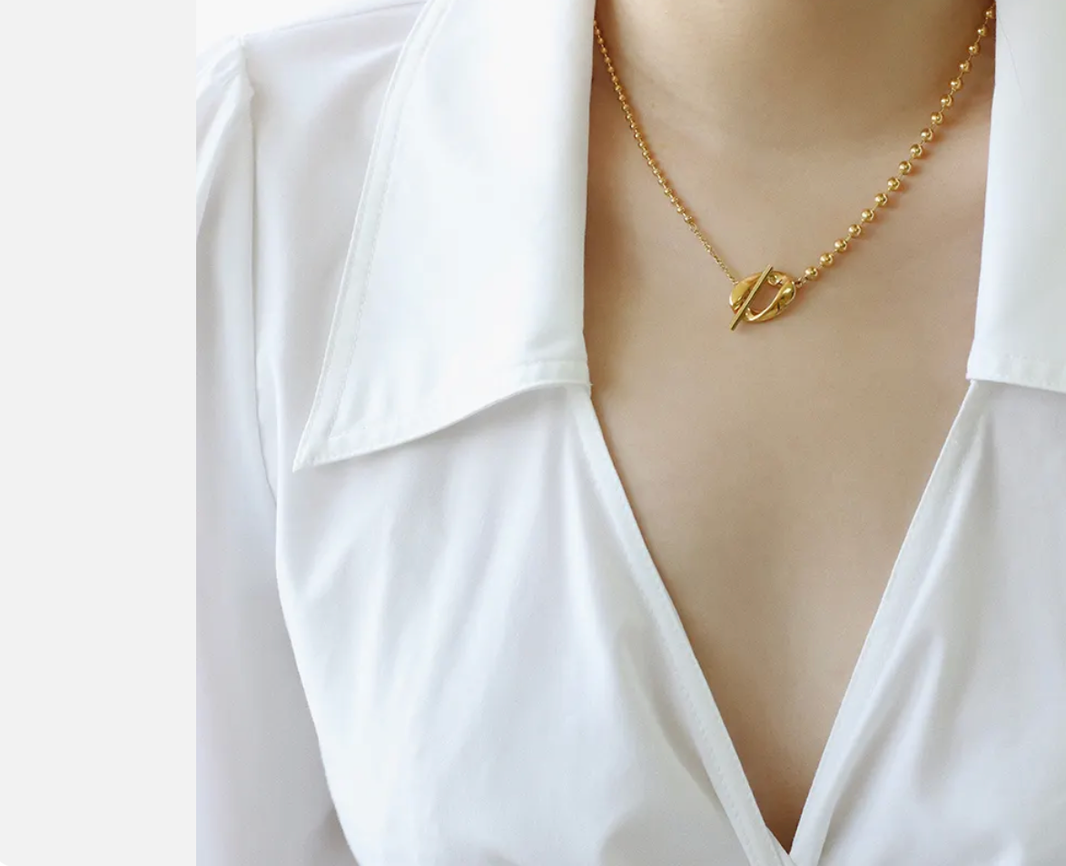Our Lily necklace is a gorgeous bead choker with stylish toggle clasp. Wear with a T-shirt and jeans or to add polish a dinner outfit.
