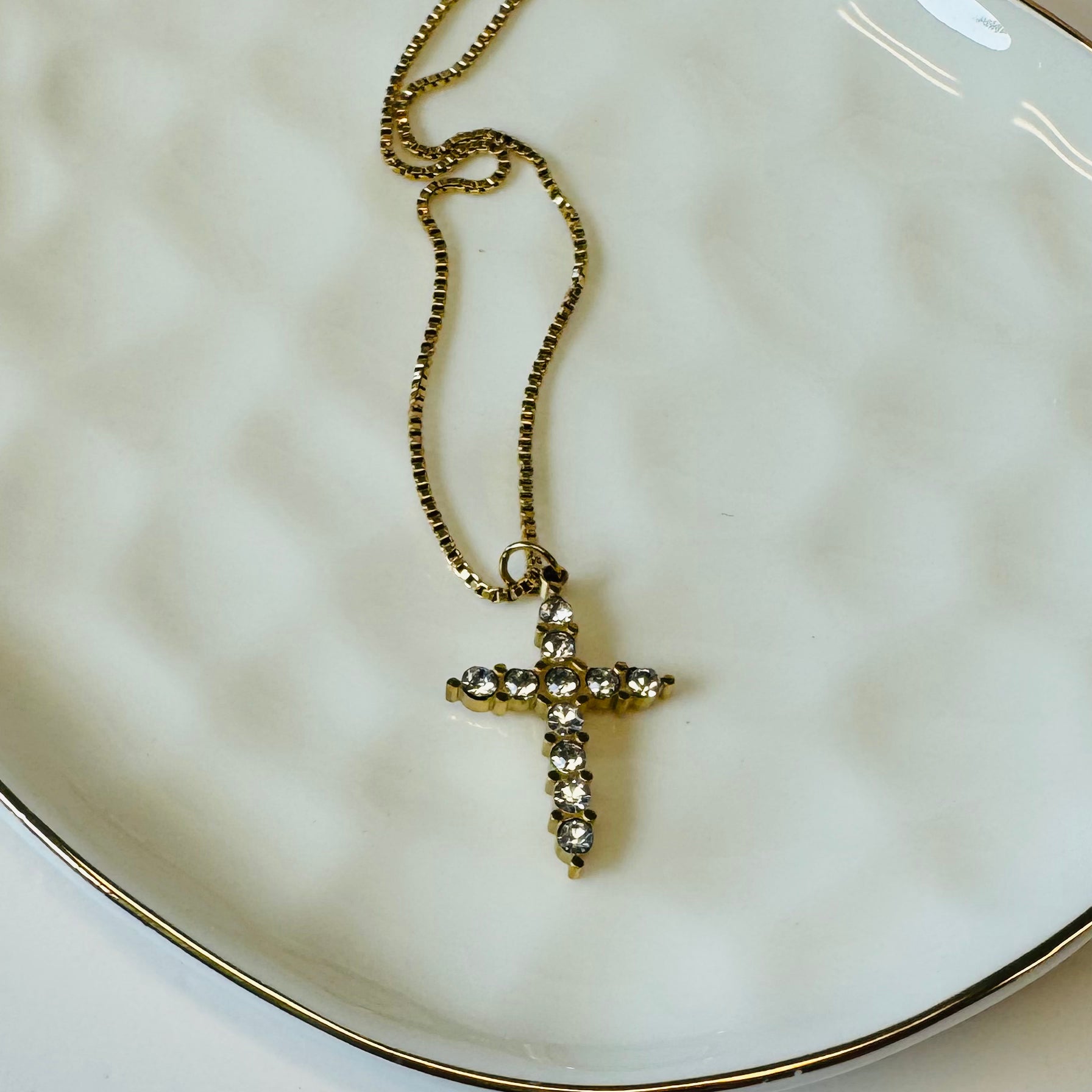 Meet Victoria. A stunning zircon cross necklace on a stylish box chain.